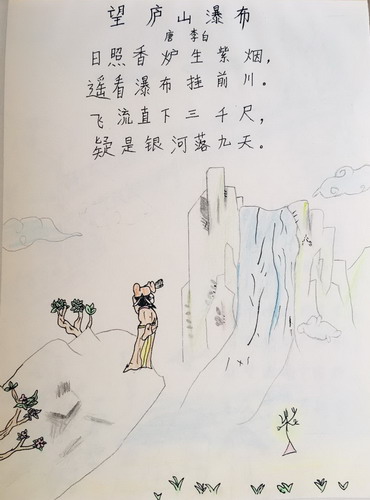 望庐山瀑布(诗配画)