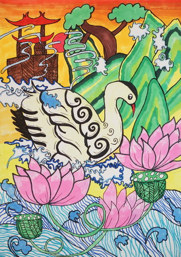 《荷池鹤影》