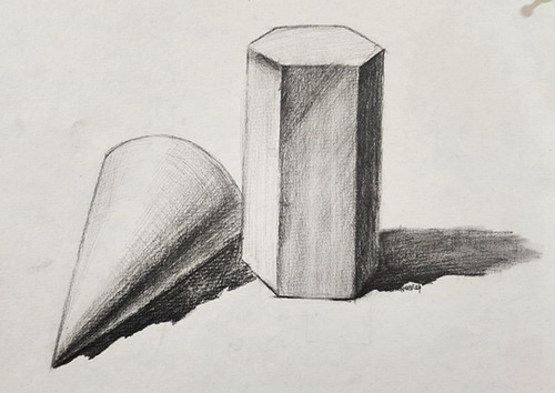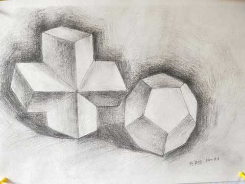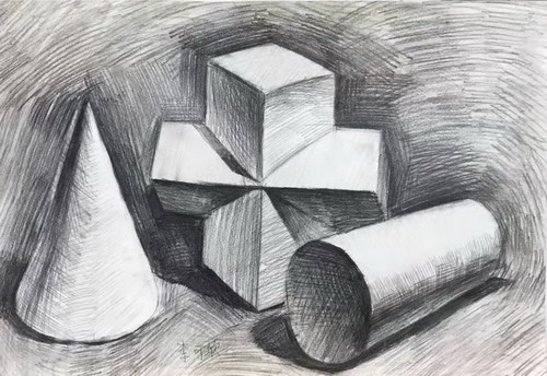 素描几何体组合写生