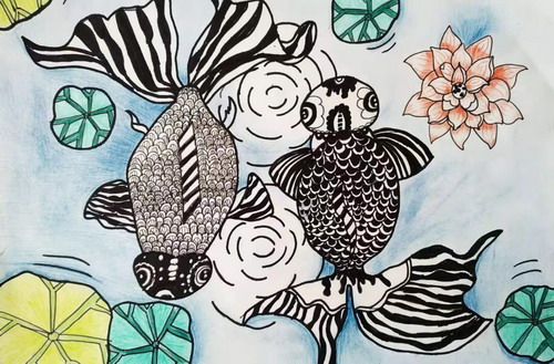 鱼戏莲叶间
