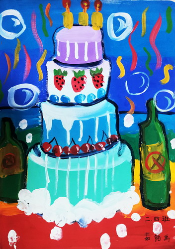 水粉画《蛋糕》