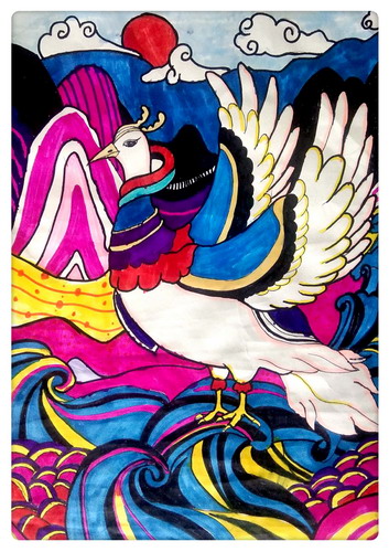 《仙鸟踏浪》