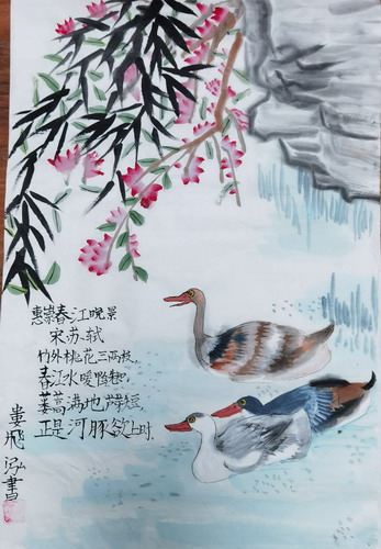 春·鸭子戏水