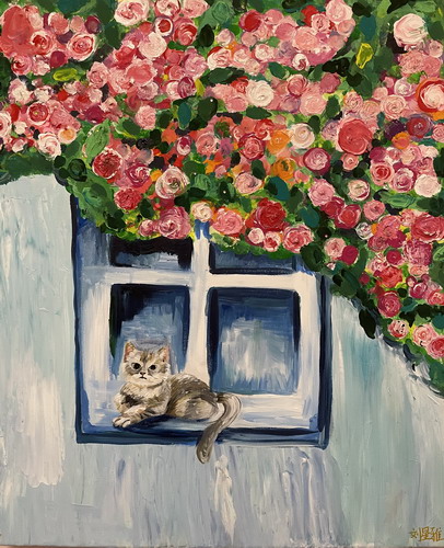 玫瑰花下的小猫