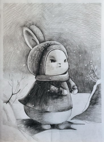 漫步雪中的兔子