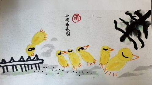 小鸡啄米图