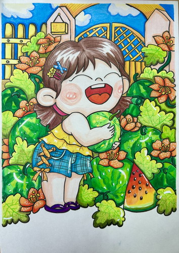 摘西瓜的小女孩