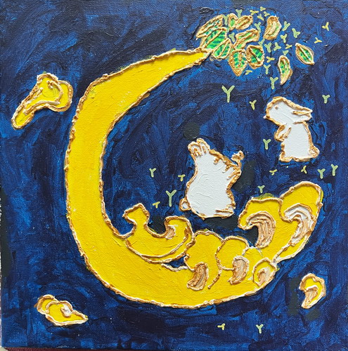 《沥粉画-月兔》