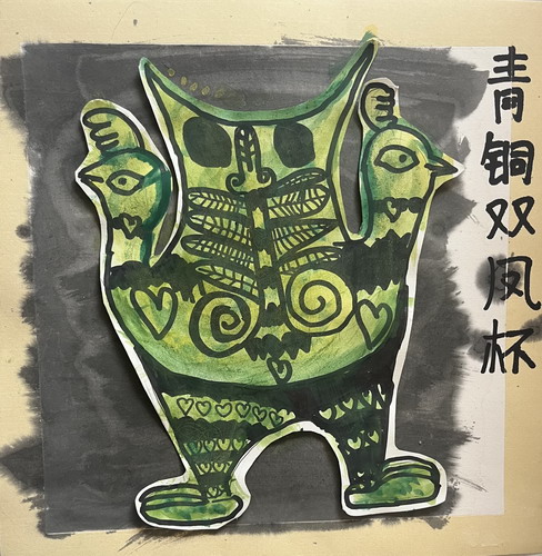 青铜双凤杯