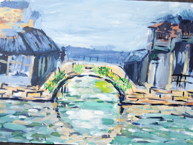 临摹古镇风景图