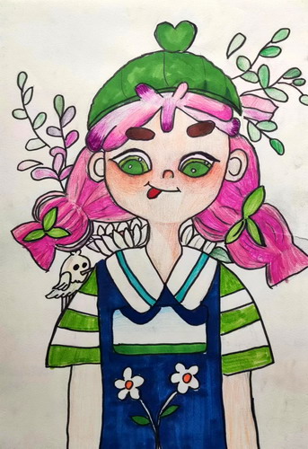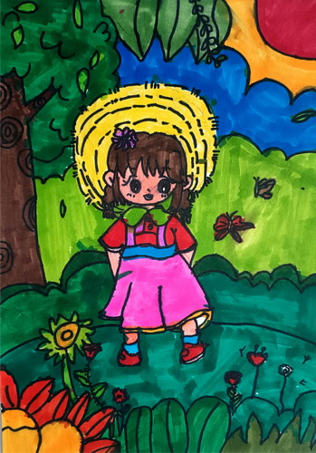戴草帽的小女孩