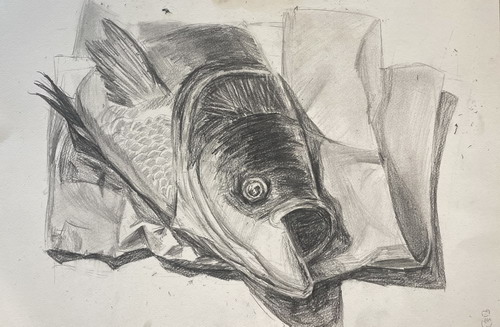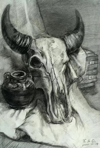 《牛头静物素描》