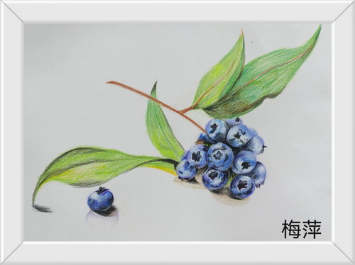 《彩铅水果蓝莓》