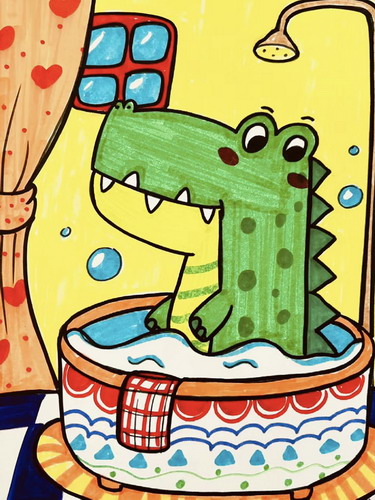 鳄鱼宝宝爱洗澡