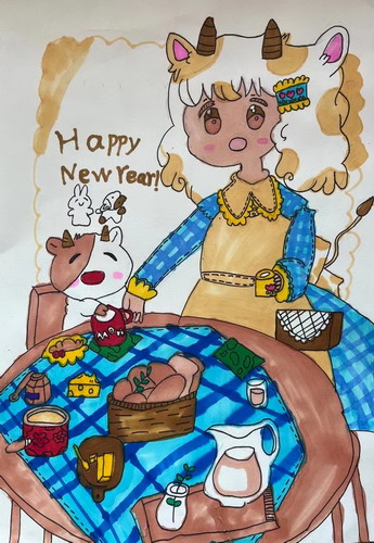准备早餐的奶牛少女