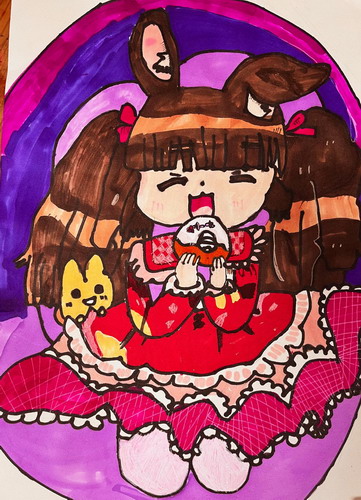 吃甜甜圈的灰兔少女