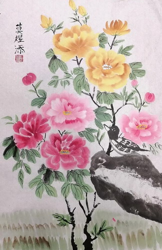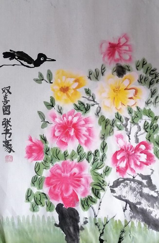 牡丹喜鹊图