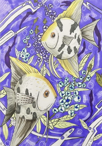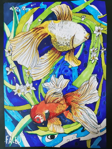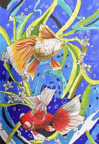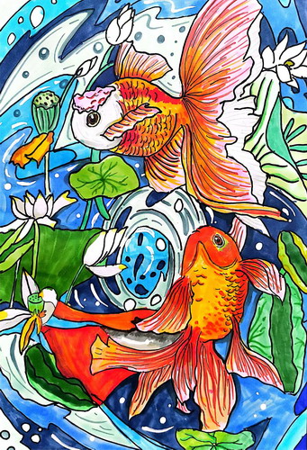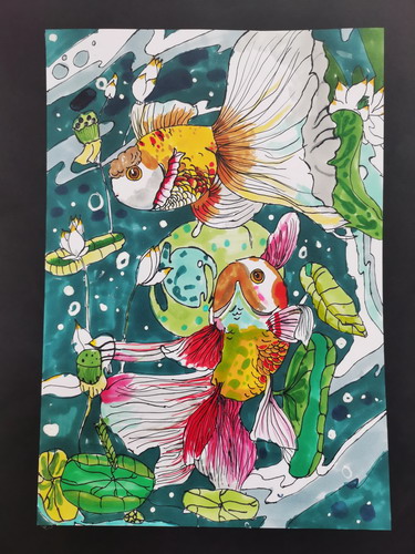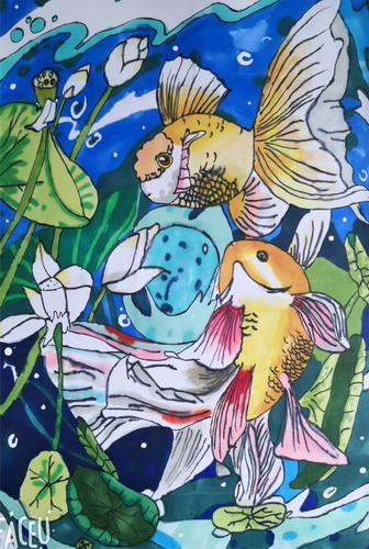鱼戏莲叶间