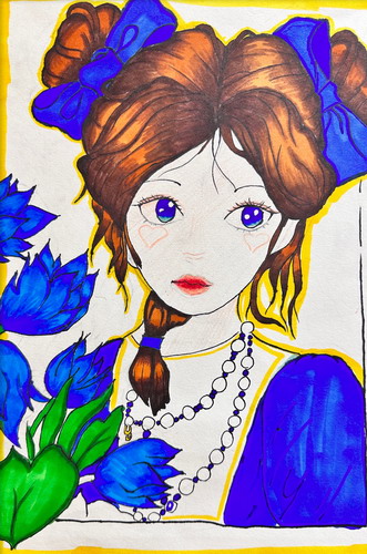 戴着珍珠项链的女孩