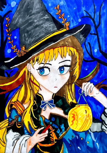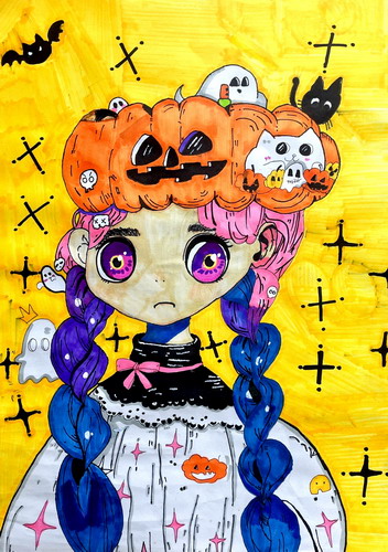 戴南瓜帽的小女孩