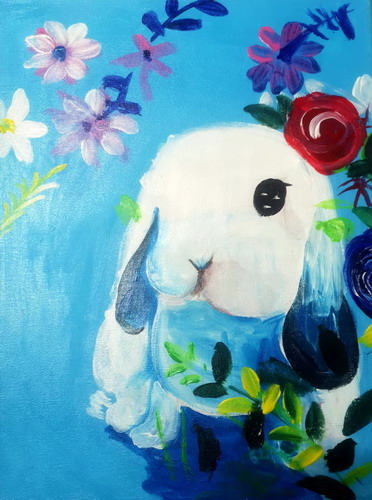 沾满花草的小兔子