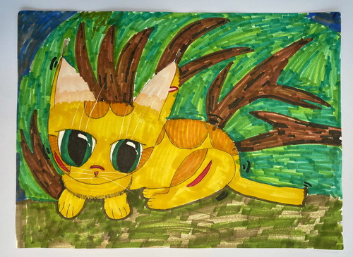 《灌木丛后的猫》