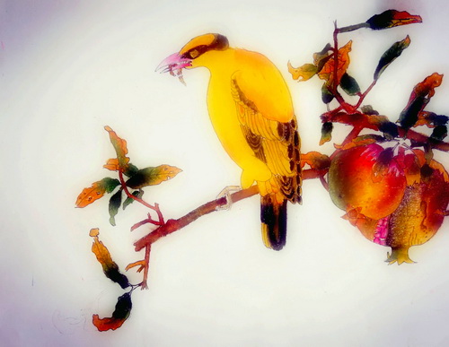 榴枝黄鸟图